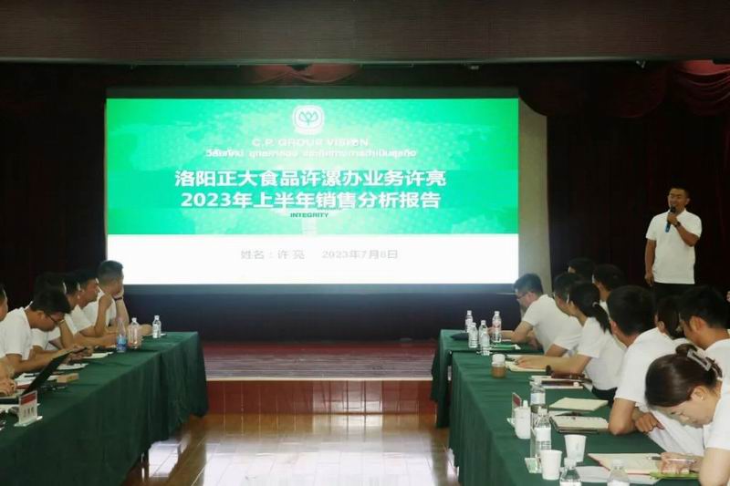 2023年7月8日,洛陽(yáng)正大上半年工作總結(jié)會(huì)議在五樓會(huì)議室隆重召開(kāi),正大集團(tuán)河南區(qū)豬肉食品事業(yè)副總裁、洛陽(yáng)正大食品有限公司總經(jīng)理沈道華、生產(chǎn)與行政外圍主管及全體銷(xiāo)售人員參加會(huì)議。